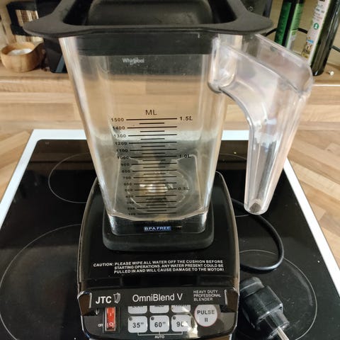 1 1/2 litraa. Hinta 45euroa. Smoothie helposti tällä laittella.