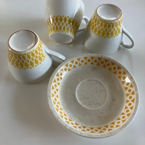 Arabia Kaunotar-sarjan kahvikupit ja lautaset vuodelta 1964