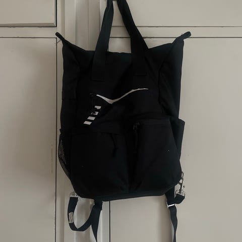 Myydään H&M:stä n. 50e:llä ostettu retrotyylinen tarkoituksella kuluneen näköinen reppu (hihnojen rispaantuneet langanpätkät ja vaaleaa kulumaa). Kuvissa pieniä käytön jälkiä eli nostolenkin pienet vekit, mustat pienet pisteet ja edessä hihnojen alapuolella tumma pieni tumma jälki sekä viimeisessä kuvassa "hupun" sisäpinnan reunat haalistuneet ja vähän värjääntyneet. Kolme ulkotaskua: yksi kyljessä, yksi selässä ja yksi repun hupussa. Lisäksi sisällä pienelle läppärille oma tasku. Nouto tai postitus, kulut ostajalle.