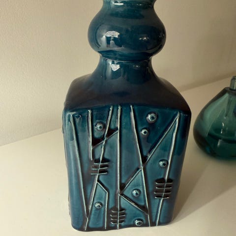 Kupittaan saven maljakko. Ehjä. Alkuperäinen tarra.