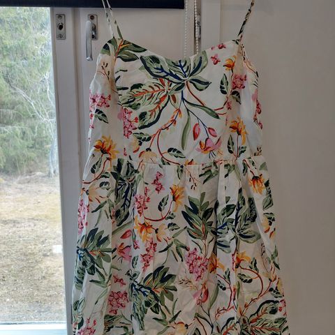Kaunis hihaton vuorellinen mekko. Takaa avarampi jossa solmittavat nauhat. Voin postittaa.