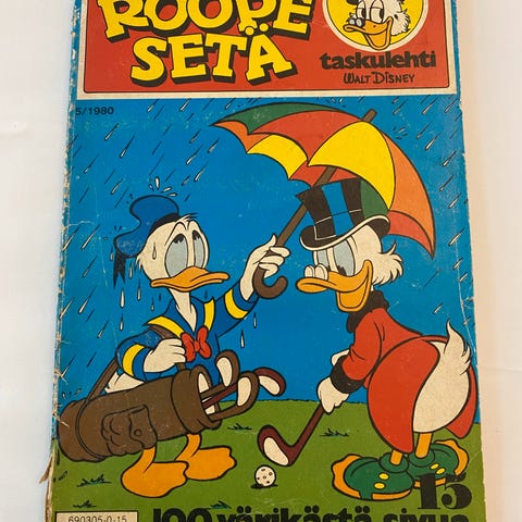Myyn todella aidon sekunda-taskulehden, Roope Sedän, no 5 vuonna 1980 julkaistu. Erikoisuutena on kahden lehden epäonnistunut leikkaus kulmistaan. Hinta määräytyy poikkeavan yksilöllisyyden takia. Haluatko lunastaa ja pelastaa tämän ainutlaatuisuuden itsellesi tai pokkarin ikäiselle synttärisankarille? Kurkkaa toki monenlaisia ilmoituksiani (mm. vintagea, keräilytavaraa, nukkeja, figuureja, merkkejä, astioita, jalkineita, vaatteita, metallitavaraa), saatat tehdä löytöjä. Samassa paketissa useampi tuote kohtuullistaa postikuluja.