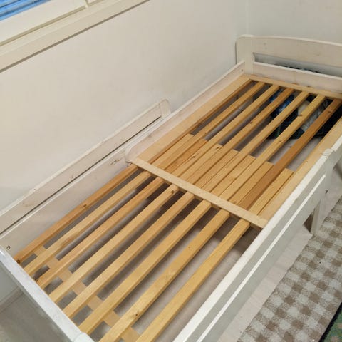 Jatkettava Ikean lastensänky. Sänky on hyvässä kunnossa, patjat ovat erittäin siistit. Irtonainen sälepohja.