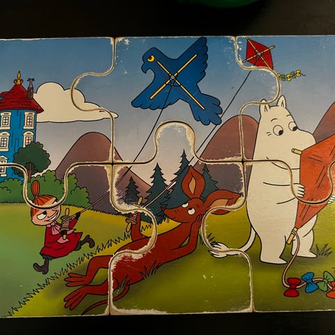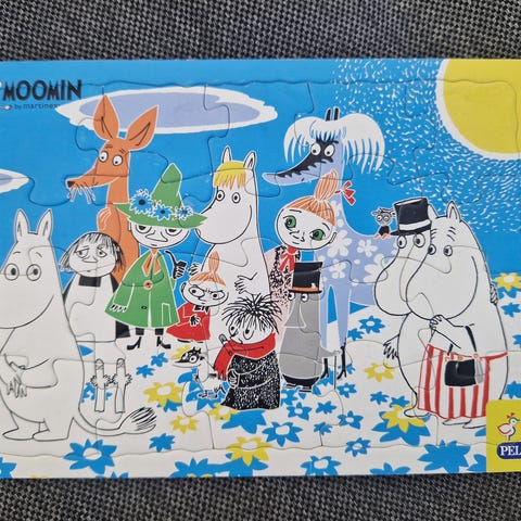 Muutaman kerran purettu ja kasattu Muumipalapeli.