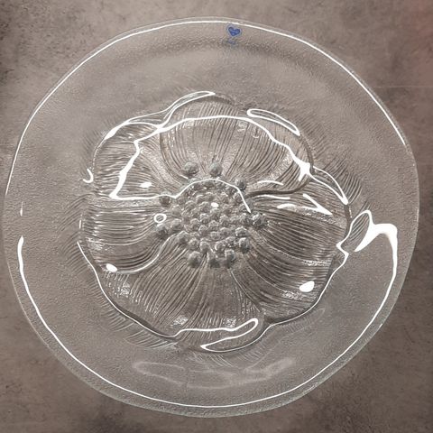 Iso Riihimäen lasin Unikko-tarjoilulautanen. Kunto erinomainen. Halkaisija 32 cm.