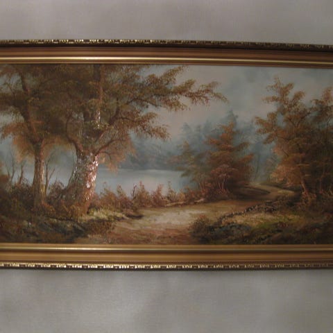 Vanha maalaus vanhoilla kehyksillä "Talvinen korpimaisema" V.Hämäläinen Iisalmi.