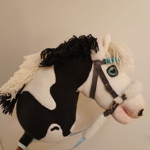 Kuvanmukaiset keppihevosen ja kaksi ruusukketta, riimunaru, suitset, riimu, loimi ja harja