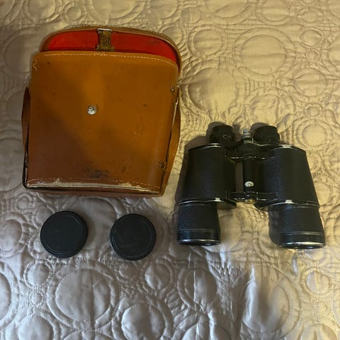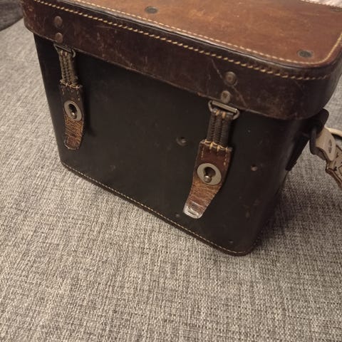 1) Saksalainen kiikarin kantolaukku tms. olkalaukku 60-luvulta, aitoa nahkaa, väri punertavan ruskea, kunto erittäin hyvä, 10eur