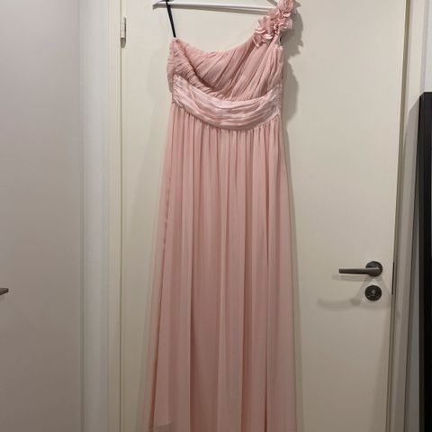 NLY EVE maksimekko (ovh 100e). Kokonaisuudessaan erittäin hyvässä kunnossa, koska ei ole ollut montaa kertaa käytössä. Myös helma on siisti. Olkaimeton, toppausta rinnalla ja silikoninauha yläreunan sisäpuolella. Selkäpuolella ristiävät nauhat. Koristepaljetteja yläosassa. Vuorattu ja päälliskangas sifonkia.