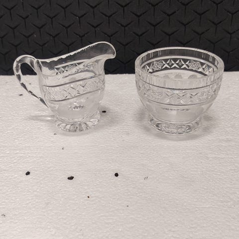 Vanha kaunis sininen setti - sokerikko ja kermakko, Riihimäen lasi.
