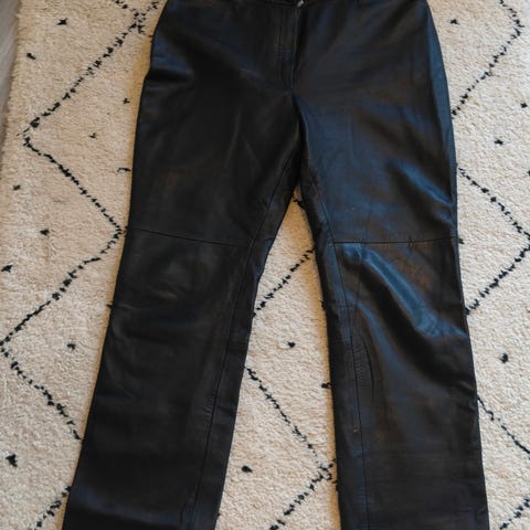 Upeat mustat pehmeää lampaan nahkaa housut. Part Two/Marvella pants. (https://www.arnotts.ie/women/clothing/trousers-shorts/part-two/marvella-casual-pants/2000168019.html). Kokovuoratut, vetoketju, sivutaskut, takatasku. Kokomerkintä 40. Vyötärö 91cm, haara-vyötärö 27cm, haarasta suoraan reiden sivuun 33cm, haara-lahkeensuu 70cm, lahje 20cm. Eivät uusille häpeä. Ei sovituksia, ei toridiiliä, en tingi. Nouto tarkka aika etukäteen sovitusti ma-pe 10-16hki88 tai postitse (matkahuolto/posti) pakettina.
