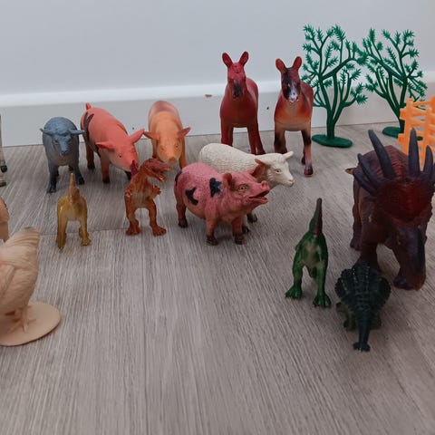 Harava, harja ja talikko heppa- tai maatilaleikkeihin. Lapion pituus 15cm. Hieman käytön jälkiä, mutta yleisilme siisti.