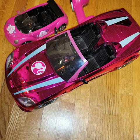Myydään Barbie pinkki avoauto. Kuvassa oleva Barbie nukke ei kuulu kauppaan.