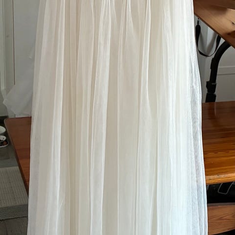 Special day häämekko + vannehame. Väriltään ivory ja koko 14. Nappi, mihin laahuksen saa kiinni on irronnut. Pesulassa käytetty käytön jälkeen. Uuten ostettu, pukupussi hävinnyt. Asussa ei tahroja tai jälkiä, erittäin siisti kunto.