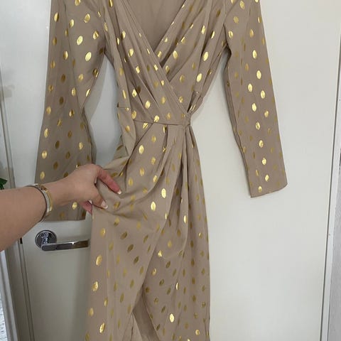 Design Tuote beige väri, naisten mekko, koko 40. Mekko on valmistettu pehmeästä materiaalista ja sopii erilaisiin tilaisuuksiin. Malli on yksinkertainen ja klassinen, jossa on suora leikkaus.