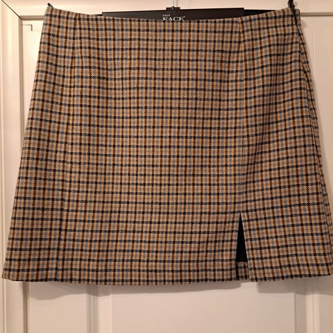 Tummanvihreä hame, jossa sivussa on pehmeää trikoota. Polvipituinen. Taipuisa ja mukava.