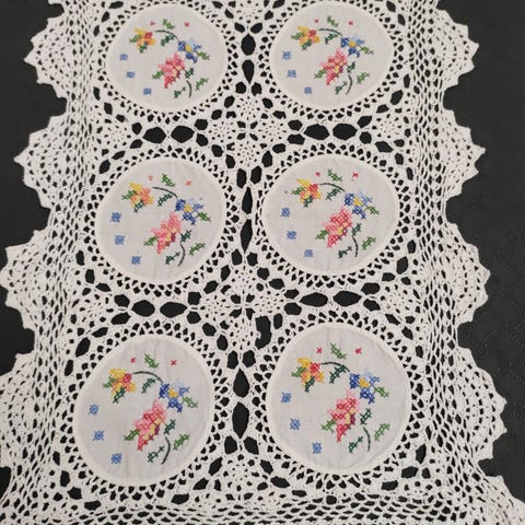 Ruskea virkattu reunapitsi, 35x12 cm.