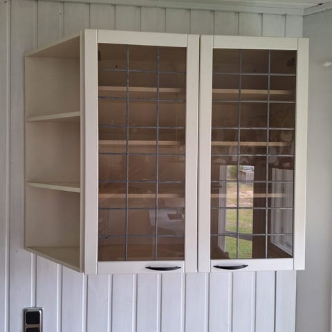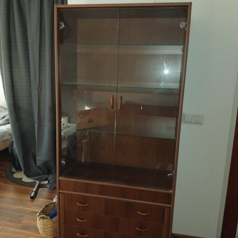 Kohtuukuntoiset lasivitriinikaapit toisessa 2-hyllyä,toisessa 3. Voin myydä myös yksittäin 25e kpl. Koko lev.80. Kork 84 ja syvyys 32.