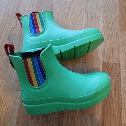 Kumisaappaat, yläosassa neuleresori, koko 37.