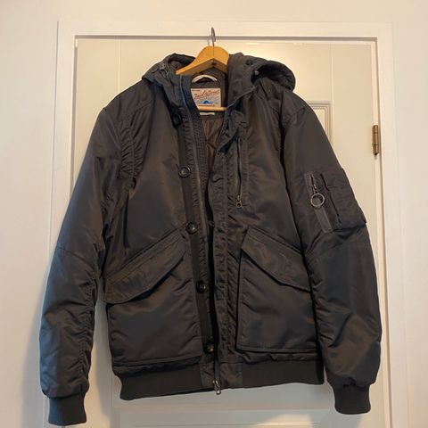 Käyttämättömäksi jäänyt Original Bombers bomberi/pilottitakki. Takissa on sen verran vuorta, että menee välikausitakista.