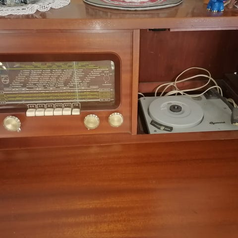 Telefunken-merkkinen salonkiradio/levysoitin -yhdistelmä 60-luvun alusta, toimiva.