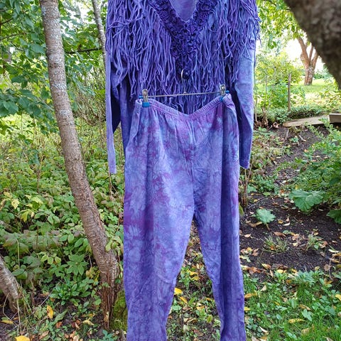 Tämä vintage-asukokonaisuus on pikemmin punajuuren ja viininpunainen. Kuvat eivät ole oikeanvärisiä. Olet katukuvassa upea väriläiskä vetäessäsi asun päällesi. Sekä housut että takki käyvät toki erikseen pidettäviksikin. Vintagekreppinailonkangas on säilynyt nukkaantumattomana ja ryhdikkäänä. Voit vetää minkälaiset kengät tahansa näiden suorapunttisten housujen kanssa. Housuihin on ommeltu eteen ja taakse silitysvekkiä muistuttavat ompeleet. Edessä on erikoisesti viistotut, lovetut avotaskut sivusaumoihin ommeltuna toisilta sivuiltaan. Kuminauhavyötärö ja kangasmateriaali armahtaa, vaikka vähän pääsisit pulskistumaankin. Vyötärön ympärys venyttämättä on 88cm. Etuosan mitta keskeltä vyötäröltä haaroväliin on 34cm. Takaosa puolestaan on 40cm. Puntti sisäpuolelta haarovälistä mitattuna on 74cm pituudeltaan ja ulkopuolelta vyötäröltä mitaten 102cm. Lahkeen alaosan ympärys on 48cm.