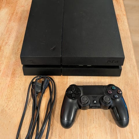 Hyvässä kunnossa oleva PS4 konsoli. Viimeiset 2 vuotta ollut satunnaisessa käytössä. Ohjain täysin kunnossa sekä ehjä 3 metrin laturi.