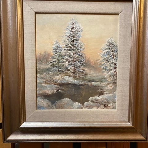 Leveys 48 cm ja korkeus 55 cm. Voin lähettää teoksen tai sen voi tulla myös hakemaan.