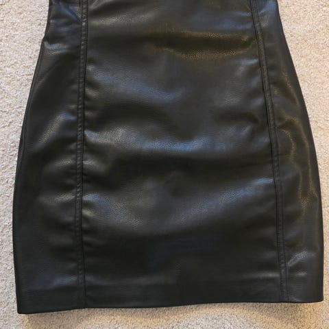Beige ja ruskea keinonahkahame, 10 e/kpl. Hameet vuorellisia ja halkio takana.