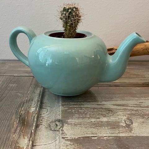 Söpöt pikku ruukut, yksi aluslautasella.