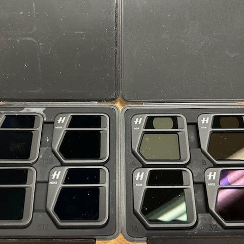 The kit of ND4, ND8, ND16, ND32 filters that are included in the DJI mavic 3 drone combo kit.