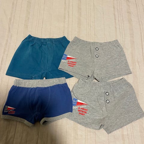 Kolmet tosi pienet, aloittelevan kalsarisankarin pöksyt. Kahdet kokoa 86, pikkukalsarimalliset koko 90. Hajusteettomasti pesty.