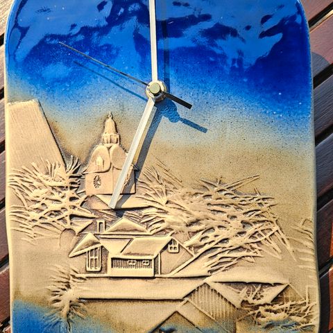 Seinäkello, patterikoneisto, keramiikka, käsintehty