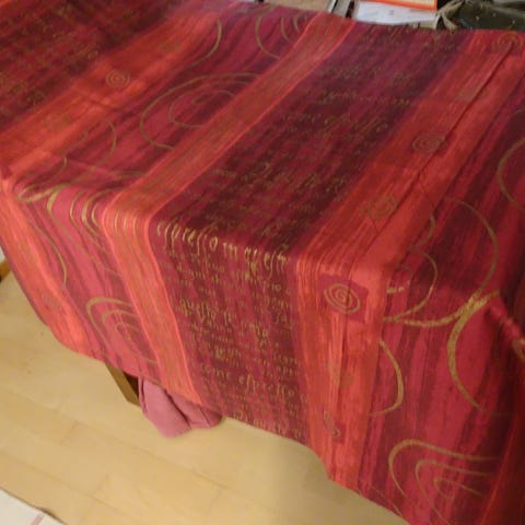Englantilainen, paksu puuvillakangas. Mitat 230x140cm.