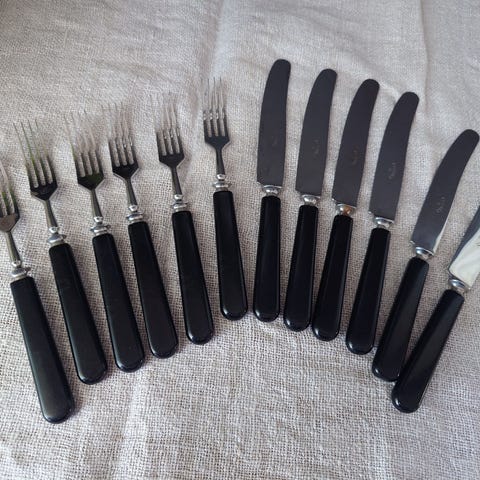Vanhat käyttämättömät Fiskarsin luupää aterimet