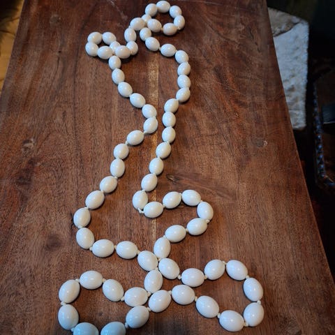 Myydään valkoinen pitkä kaulakoru. Ehjä.