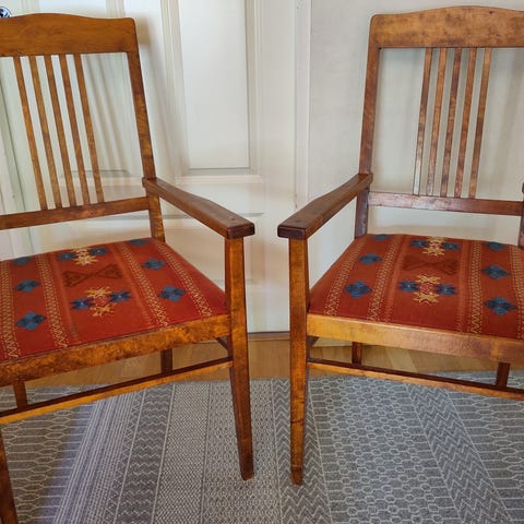 2 kpl pormestarin tuoleja. Olleet käytössä mutta nyt pitäisi varmaan jo entisöidä. Toista tuolia avattu että nähdään jousitusten kunto. Jousitukset tarvitsevat ainakin osittain sitomista. Puuosat kunnossa. Entisöijän unelma. Hinta 100e/kpl tai tee tarjous.