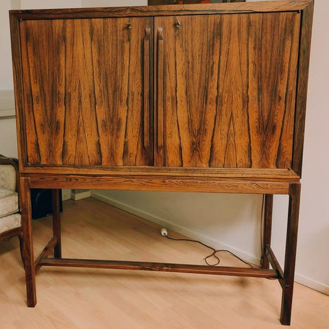 Kotimainen Nurmelan jykevä vitriini/baarikaappi. (Ovh noin 700€)
