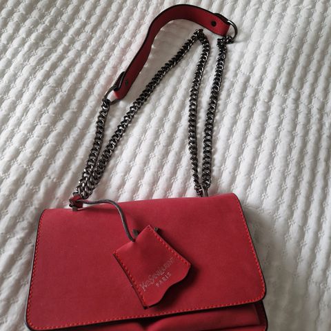 Paola Suhosen suunnittelema tulppaanikuosinen pikkulaukku. Olkaketju on irrotettava ja laukussa on pitävä klipsilukko. Materiaali on polyesterisatiinia. Laukun koko on 20 x 18 x 8 cm.