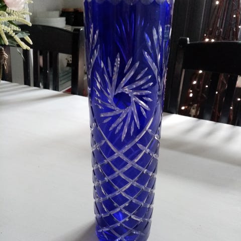 Pieni kristalli maljakko. Perhonen ja sudenkorennot. Korkeus 12.5cm. Suuaukon halkaisija 3cm/3.5cm. Signeeraus pohjassa (ot.T 2683.MI.S) Sven Palmqvist. En ihan varma, niin pienellä. Ehjä ja siisti. 10€/tarjous. Postimaksun maksaa ostaja.