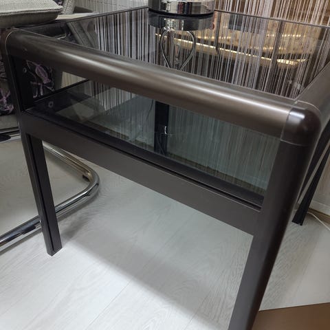 Myydän hyvä pöytä, jossa on lasinen taso; Nouto kemistä.
