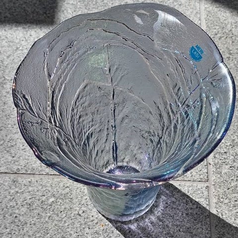 Myyn Merilasin maljakon, korkeus 23 cm. Nouto Mäntsälä, kulkeutuu Järvenpäähän ja Hyvinkäälle. Voin myös postittaa, mutten ota vastuuta astian mahdollisesta halkeamisesta kuljetuksessa.