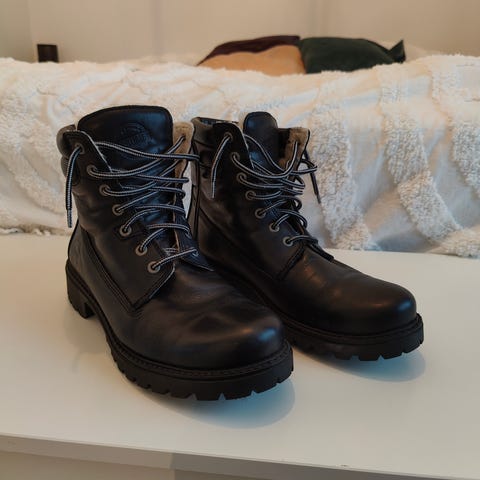 Aitoa nahkaa ja villavuori, kunto erinomainen. Todella lämpimät kunnon talvikengät. Sisämitta 27cm