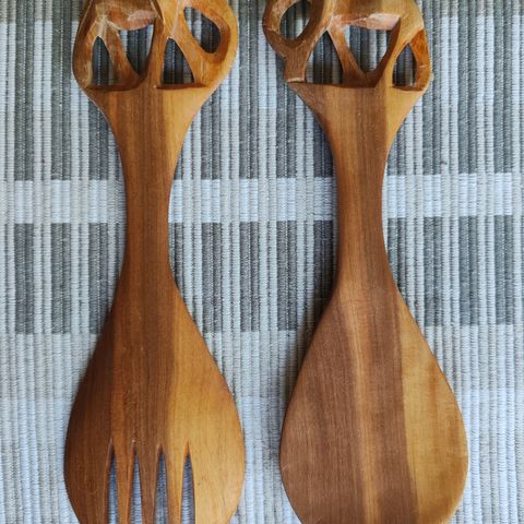 Zimbabwesta tuodut puiset norsuaiheiset käyttämättömät salaattiottimet. 6