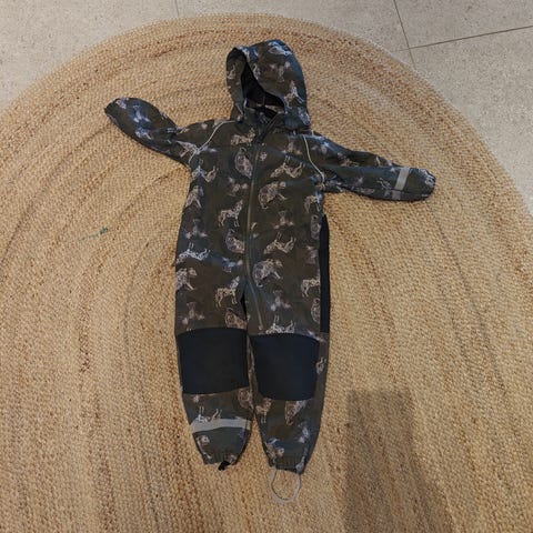 Haalari on hyvässä kunnossa. Hihansuissa ja lahkeissa hieman pinttynyttä likaa.