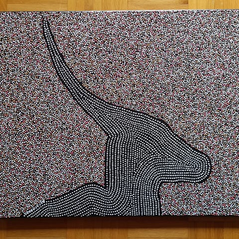 Kanadanilves, 110x83 kokoinen (cm) akryylimaalaus maalauspohjalle (puukiiloihin kiristetty kangas), ei ole kehystetty. Saa ripustettua seinälle sellaisenaankin ilman kehyksiä.