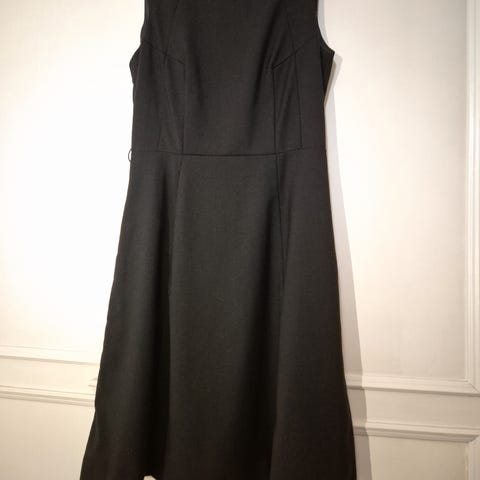 Kevyt minipituinen pikkumusta röyhelöhihoilla. Selän puolelta V-kaulus. Mekko jäänyt viime aikoina vähemmälle käytölle. Hyväkuntoinen.