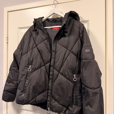 Hinta postitettuna 20 euroa. Kangas on kahisevaa. Materiaali Nailon polyamidi, sisällä vanu. Valmistaja Luhta. Kokoarvio XL. Kainalo...kainalo 64 cm, talvitakki toppatakki takki kirkkaanpunainen,