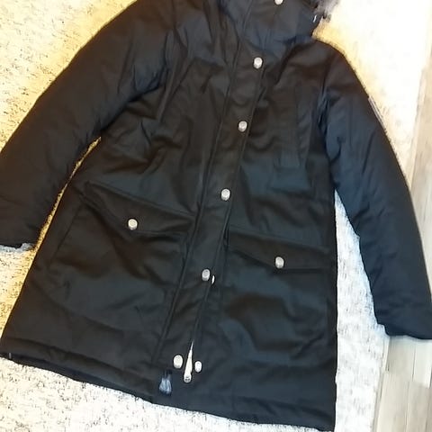 Naisten parkatakki Koko 42. Kuvassa näkyy pieni käytön jälki, muuten ehjä
