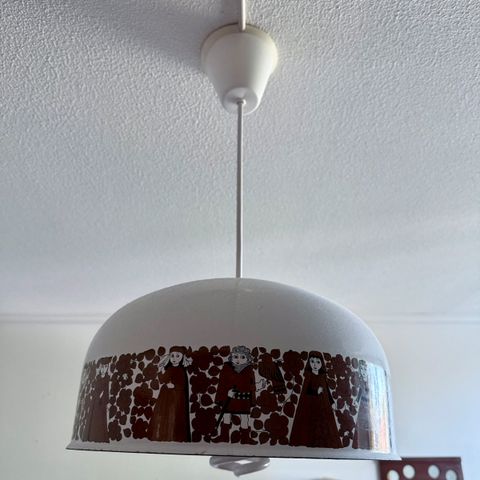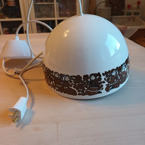 Tämä Esteri Tomulan Finellille suunnittelema Neptum-kattila ei ehkä enää aja asiaansa kattilana, mutta on liian kaunis pois heitettäväksi. Niinpä hän sai uuden elämän Köökki-Pipe-Valaisimena.